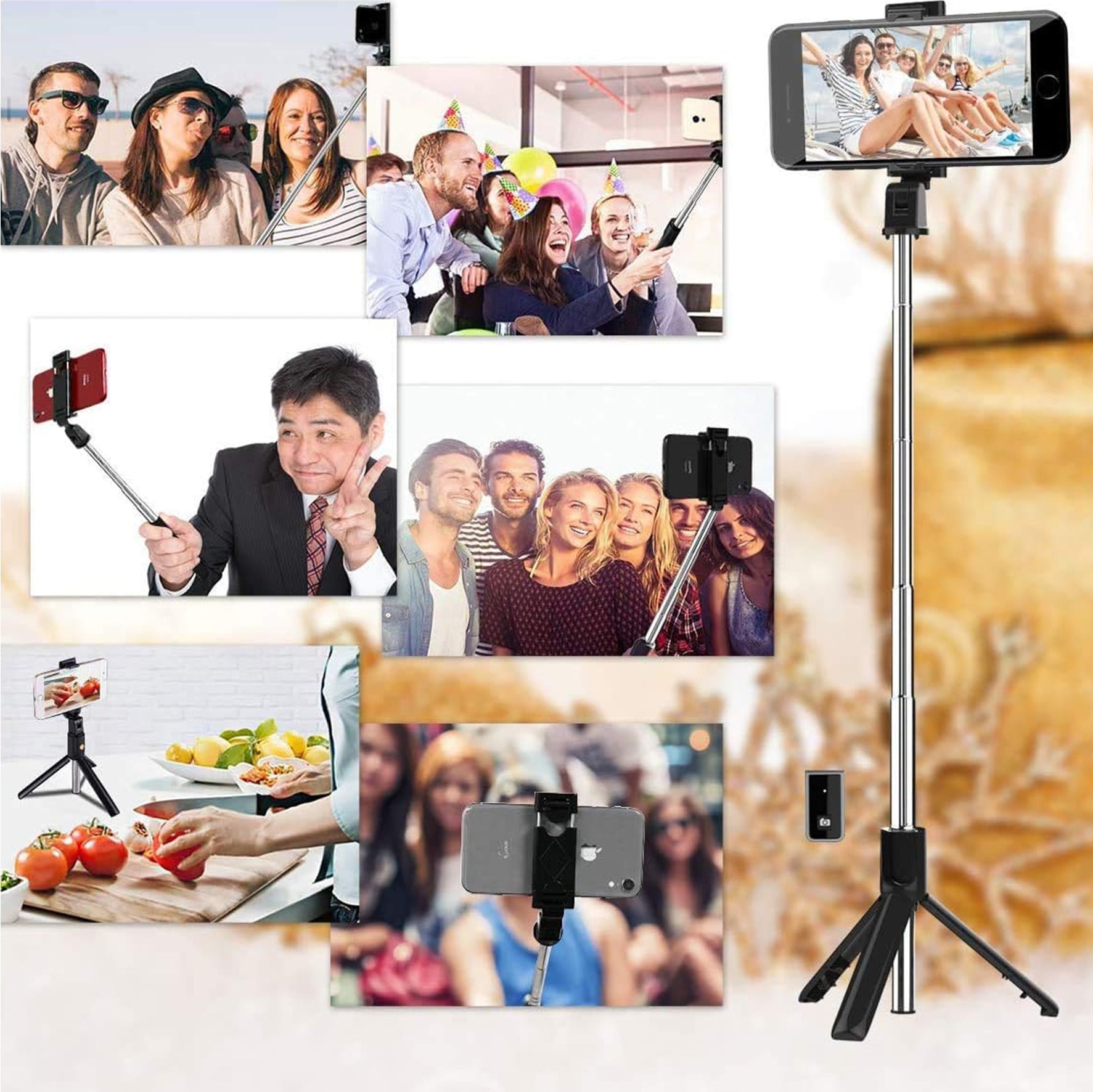 • 【Adjustable Angle and Rotatable Phone Holder】This extendable tripod for iphone with a 360° phone holder and a 180° swivel head, allowing you to choose the perfect angle when taking pictures.