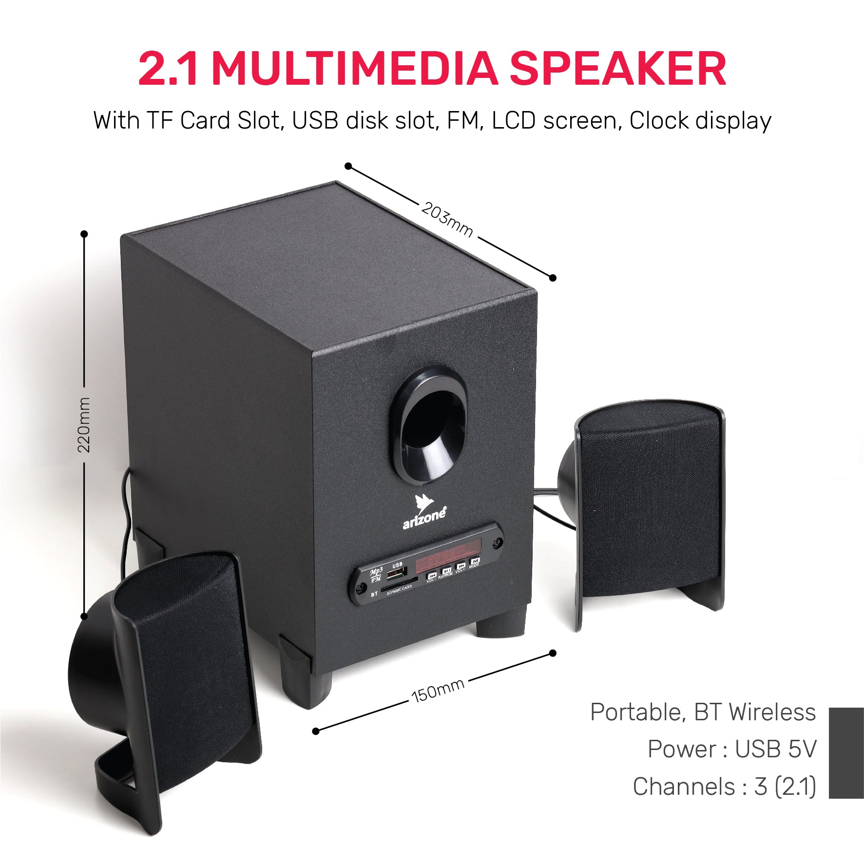 ARIZONE 2.1 USb-Powered Desktop Speakers with Powerful Subwoofer, USB and Bluetooth Coonectivity, TF Card Slot, USB Disk Slot, FM