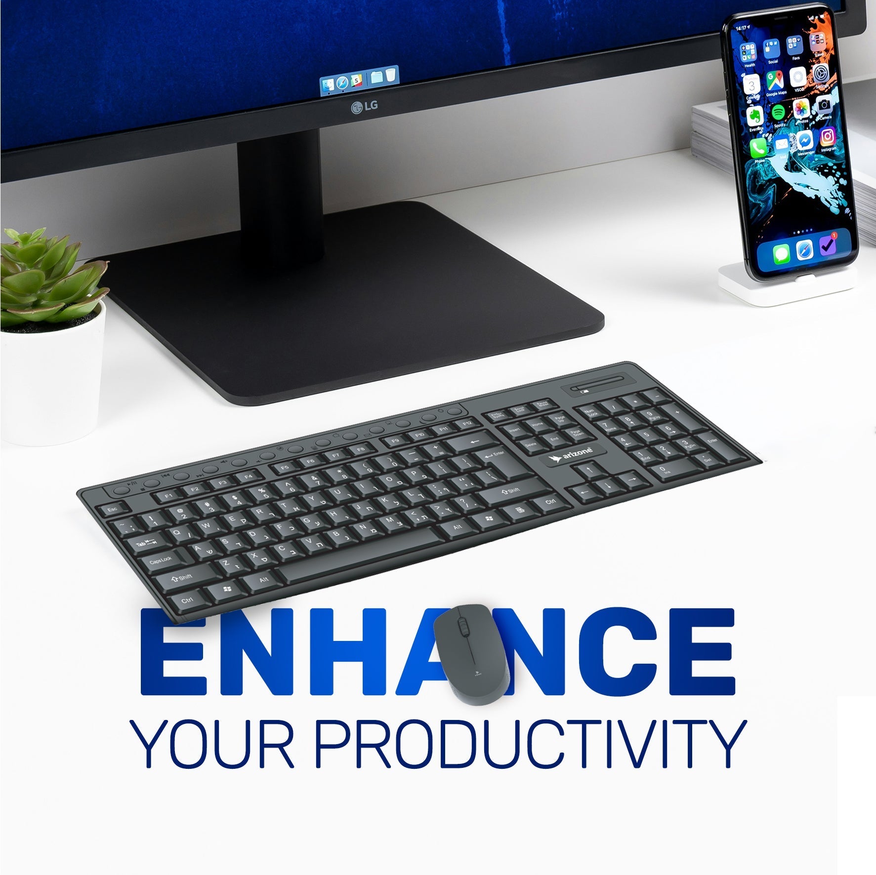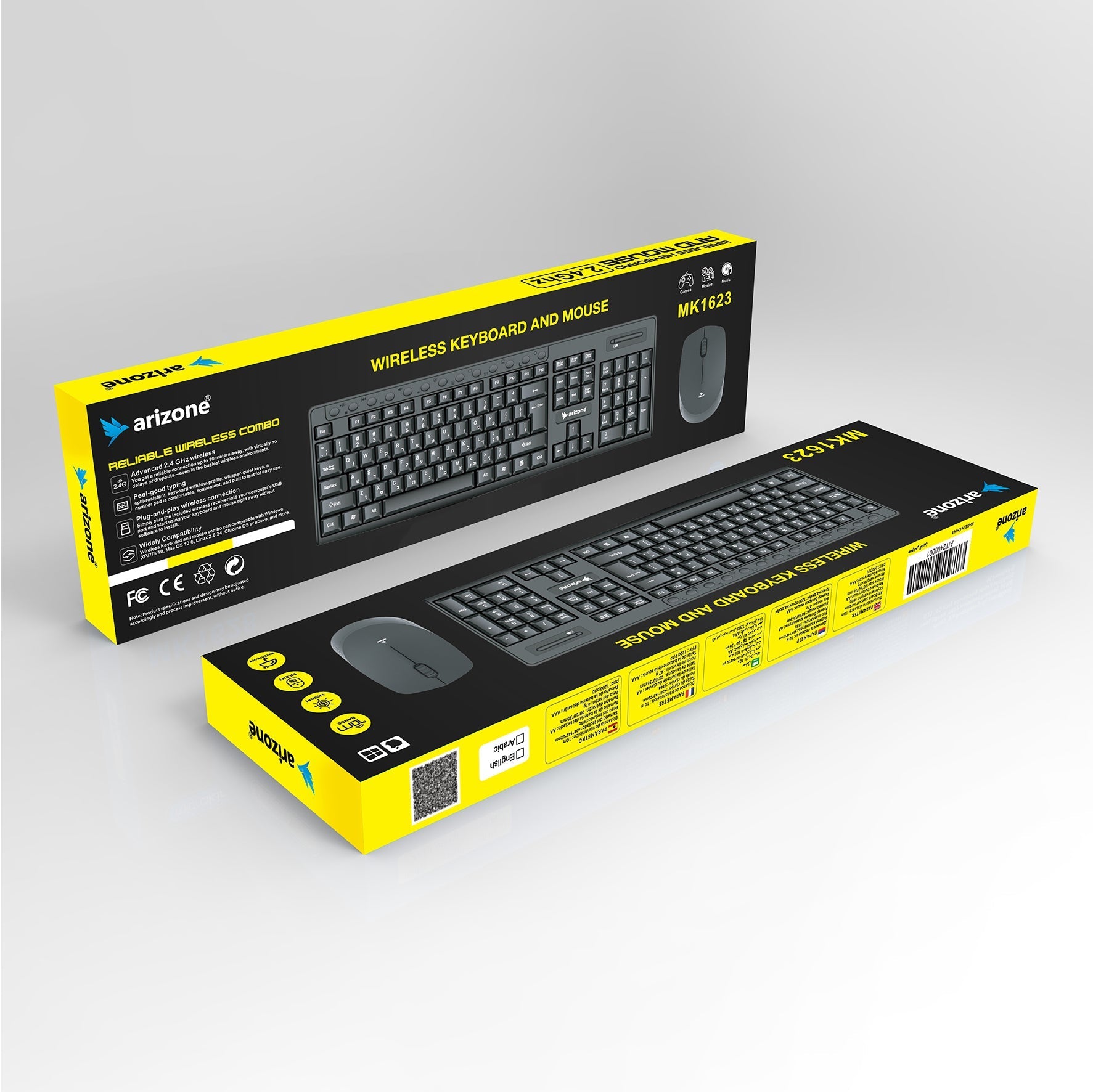 ARIZONE MK1623 Wireless Arabic/English Keyboard And Mouse Combo For Windows, 2.4 Ghz Wireless, Compact Wireless Mouse, Multimedia And Shortcut Keys, Pc/Laptop