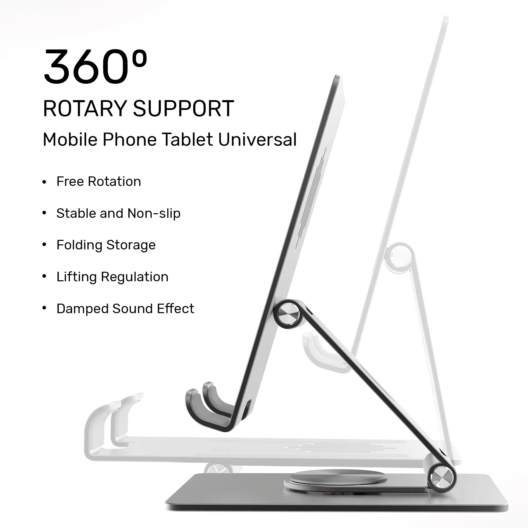 ARIZONE Tablet Stand for Desk, 360° Rotating Tablet Stand Holder, Foldable Portable Ergonomic Design, Compatible with iPad Pro/Air/Mini to 13.3 Inches Tablets, Silver
