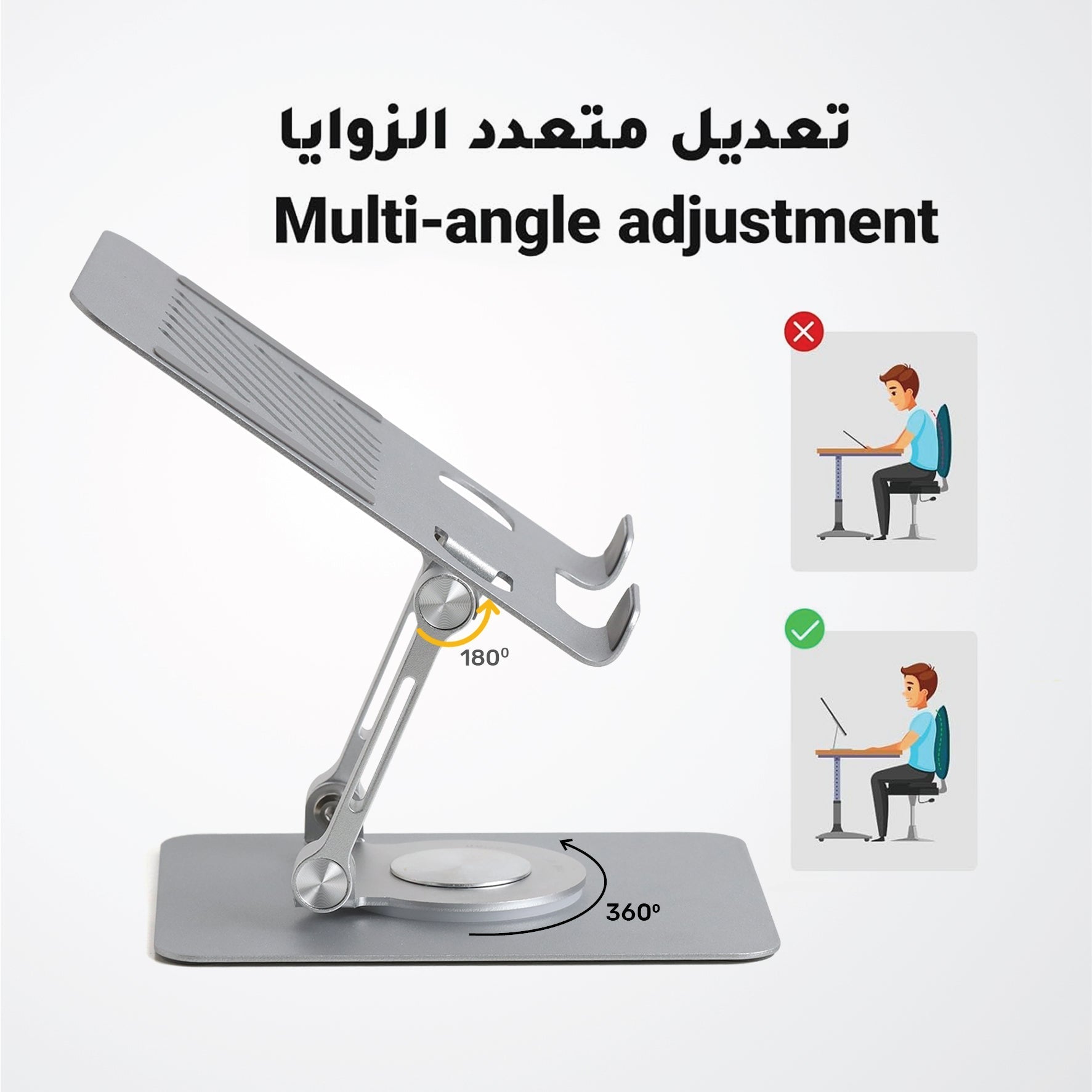 • [360° Rotation] This tablet holder can swivel in 360 degrees thanks to a rotating base, adjustable in angle and height. You can also put the tablet on the stand vertically and horizontally for optimal viewing and typing angles