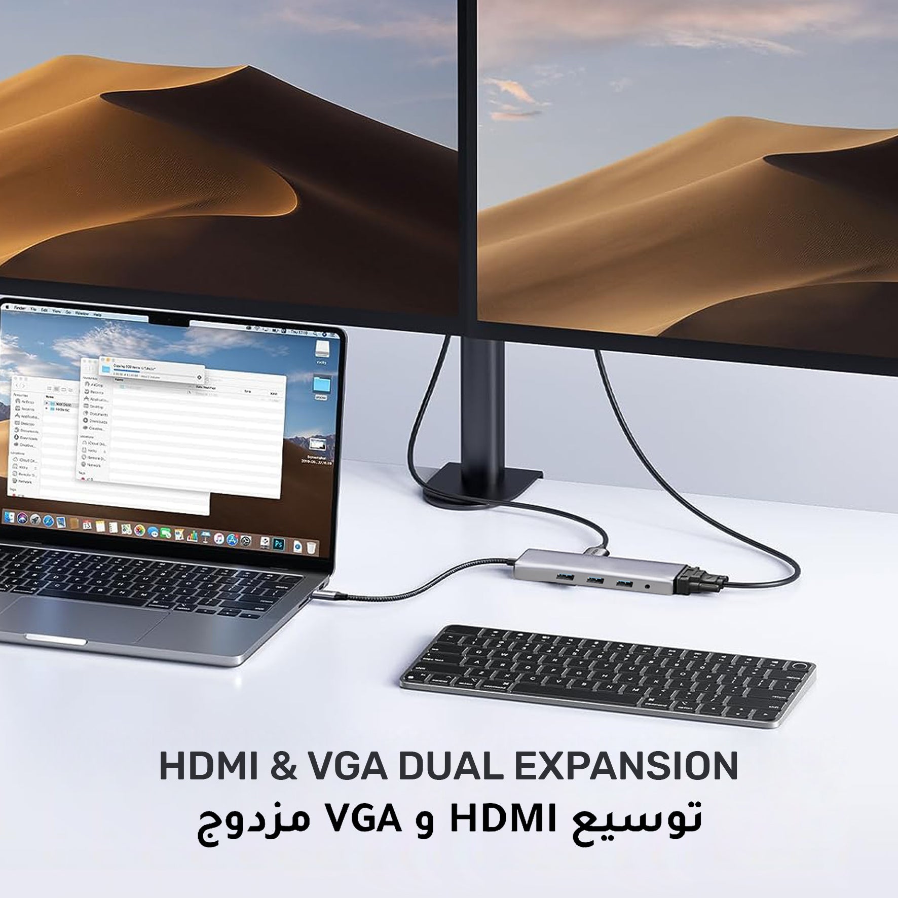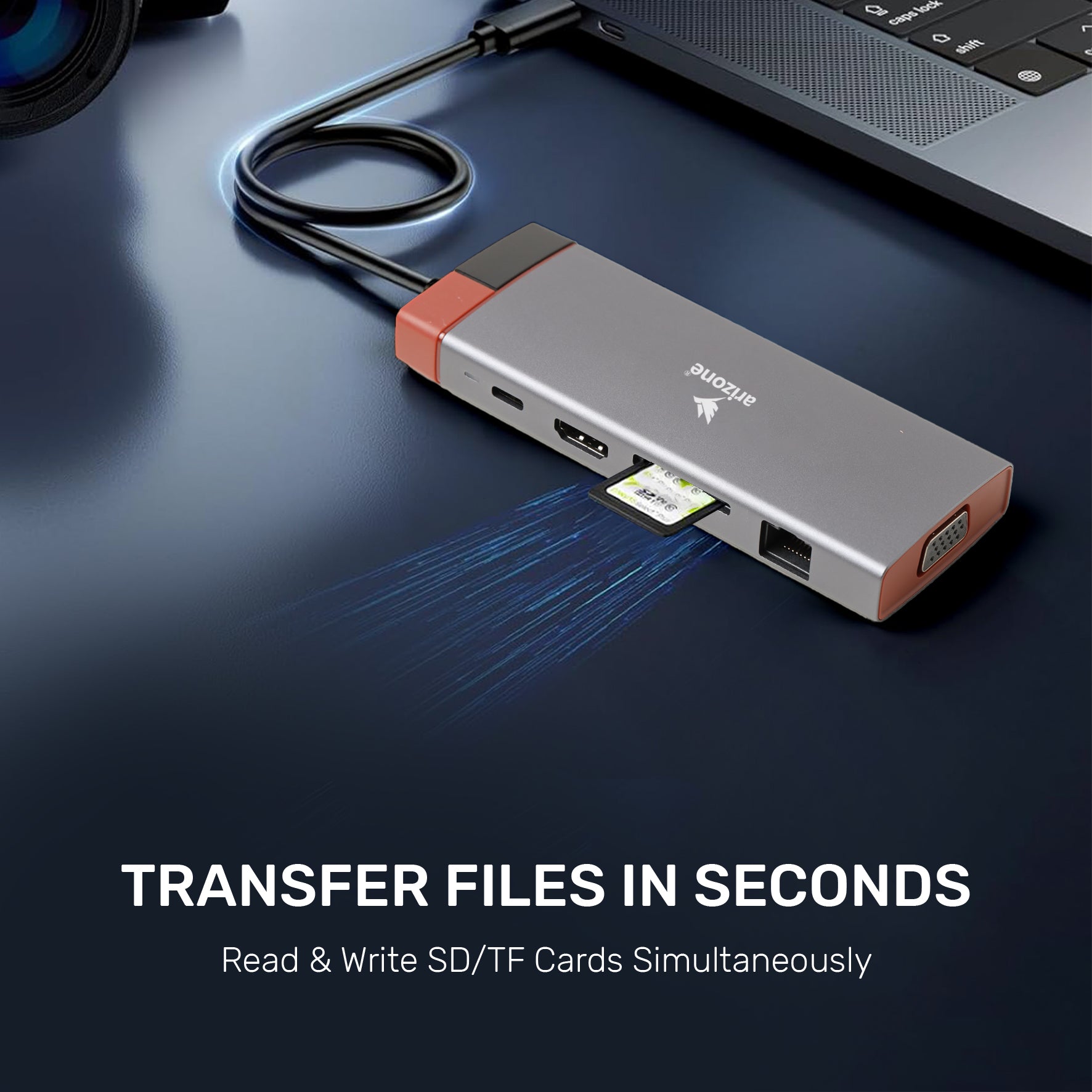 ARIZONE USB C Hub 10 in1 with 4K@60Hz HDMI Port, Ethernet Port, 100W PD Charging, VGA Port, 3.5mm Audio Port, SD 3.0 & TF 3.0 Card Reader