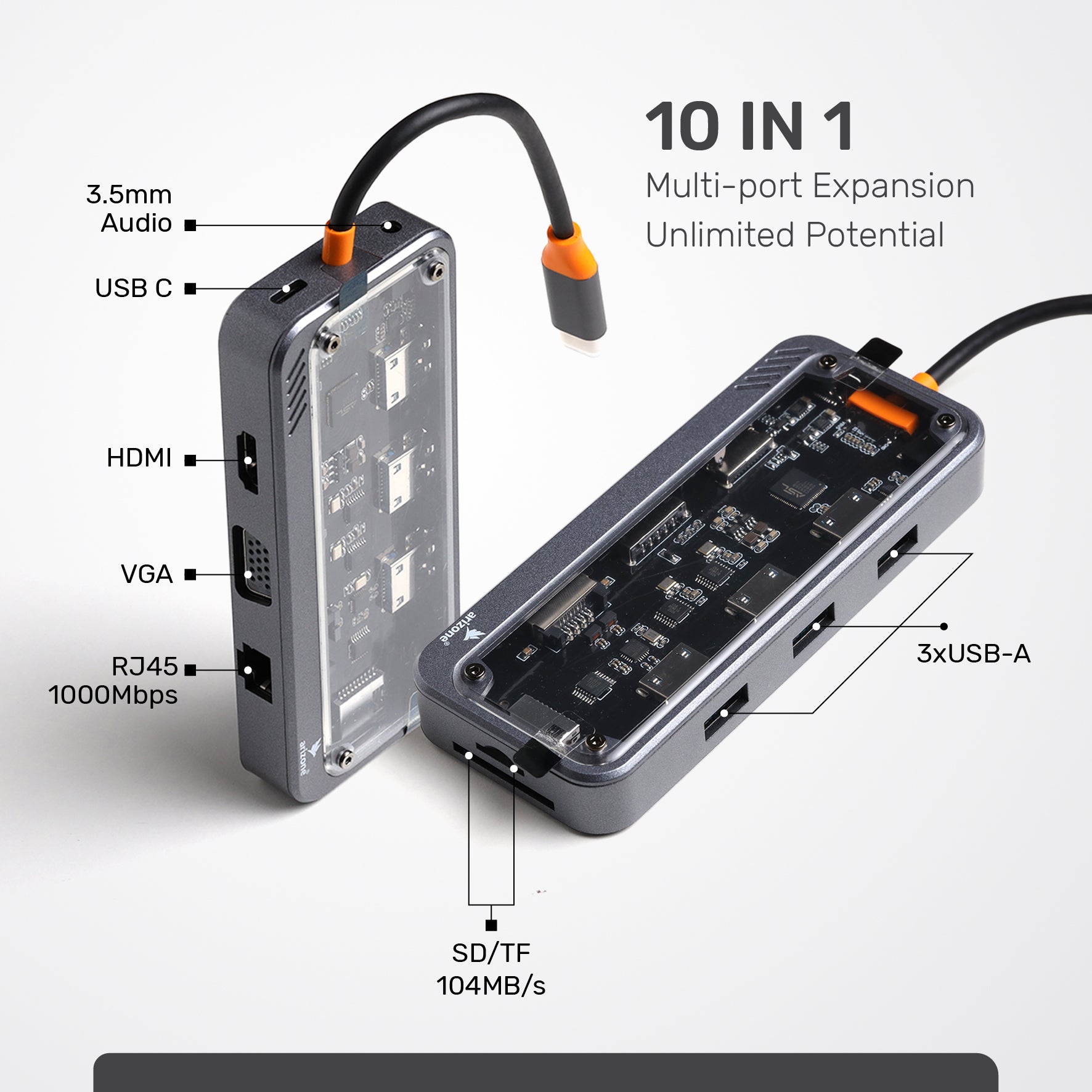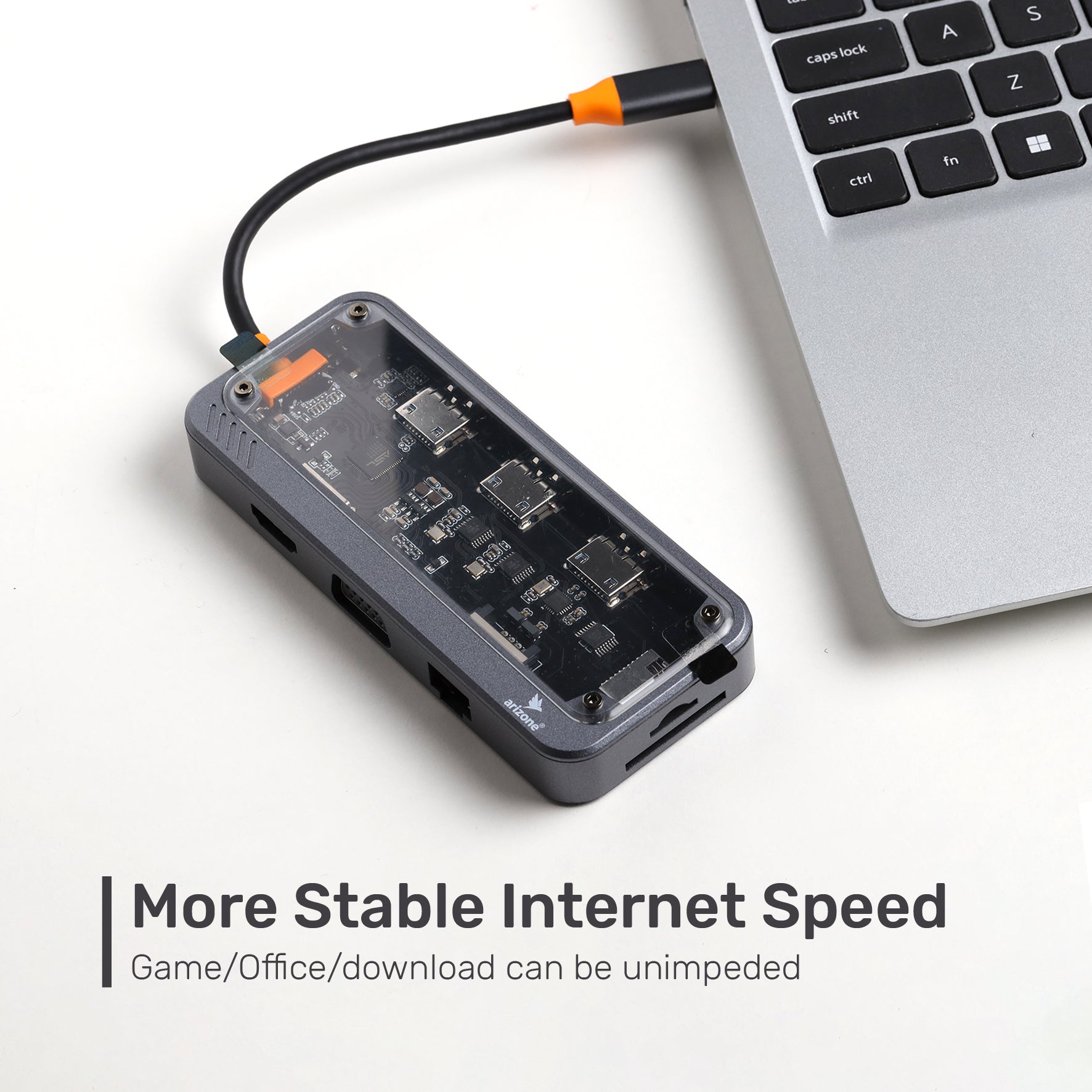 ARIZONE USB C Hub, PD Charging Support 4K HD Multiport Docking Station Plug and Play Storage Card Reader for Laptop for OS X (10 in 1 100M Network Port)