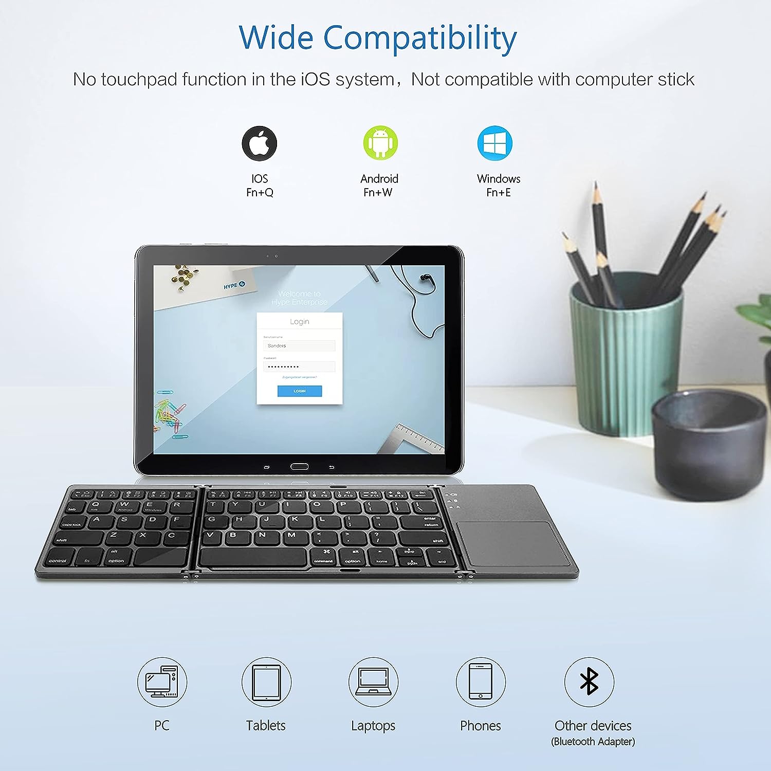 • Sensitive Touchpad : The Foldable Bluetooth Keyboard in addition to a full szie keyboard layout, also features an sensitive integrated touchpad, allowing users to perform mouse operations and gesture controls, greatly enhancing efficiency